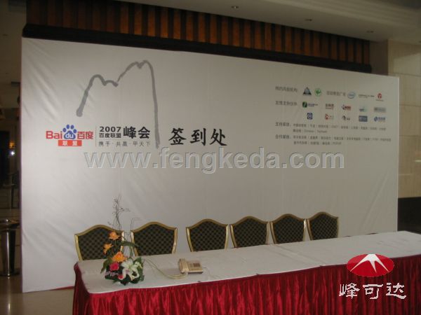 2007年4月,桂林漓江大瀑布酒店,2007百度联盟峰会,我公司提供背景搭建服务。